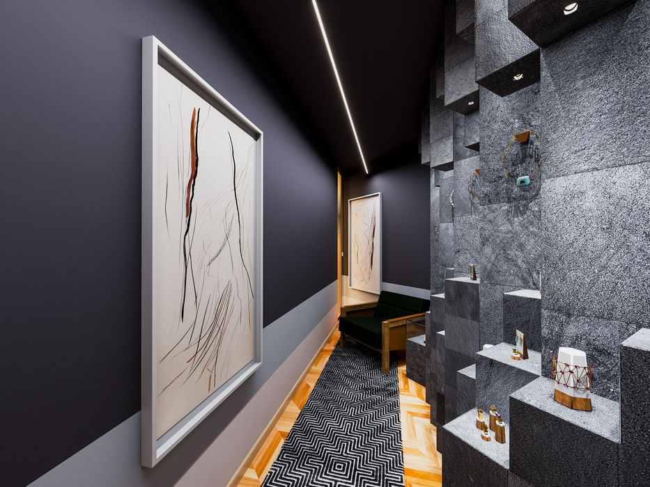 Pensando assim, aliamos as formas esculturais produzidas naturalmente pela natureza à tecnologia empregada nas novas formas de se aplicar os materiais. A proposta é representar uma pedreira de basalto que com seus volumes criam uma geometria neoplástica.
