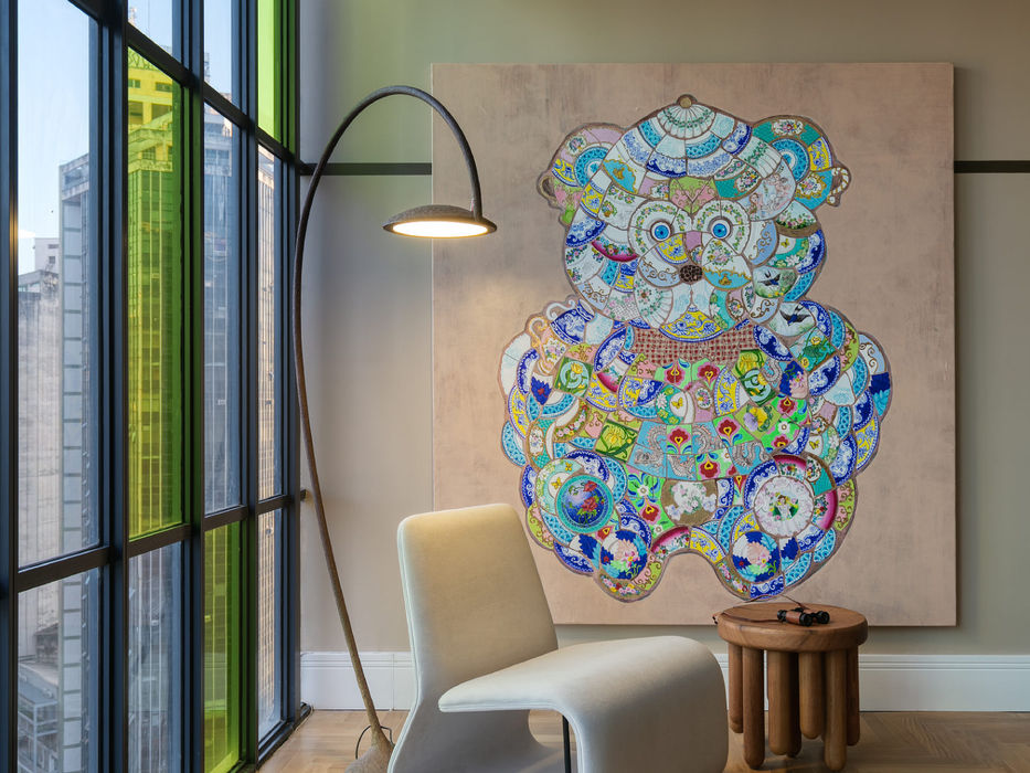 Da janela de seu quarto, uma mulher contempla as ruas da zona central da cidade. A velocidade e o adensamento das pessoas lá fora são inversamente proporcionais à atmosfera do apartamento em que habita. Das lentes dos seus binóculos, ela gosta de observar o mundo através da pele de vidro de seu edifício modernista. Em seu quarto, não há cortina, somente vitrais que estão ali para mediar a troca entre universo público e privado, mas também para demarcar os limites invisíveis entre o que está fora e o que está dentro de nós. Neste momento, surge o quarto da solitude, um estado/espaço de introspecção e amorosidade muito particular.